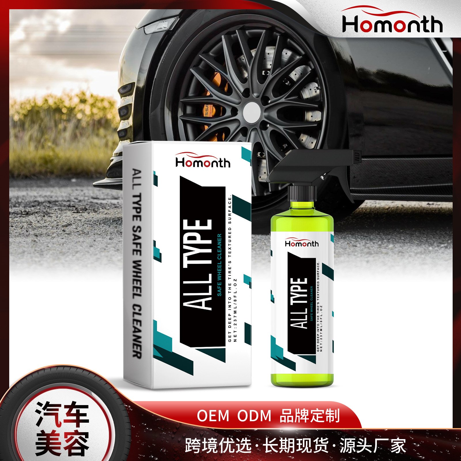 Our All-Type Wheel Cleaner contains Sodium Lauryl Ether Sulfate and Dipropylene Glycol Methyl Ether. It effectively removes stubborn dirt such as brake dust and oil stains. The usage method is simple: 1. Ensure the cleaning surface is free of impurities and shake well before use. 2. Spray a small amount multiple times on the tire surface. 3. Use a sponge or brush to remove surface dirt. 4. Rinse with water. Additionally, it features a spray design for wide coverage, simple and quick use, rapid effectiveness, time and effort saving, and improved cleaning efficiency.