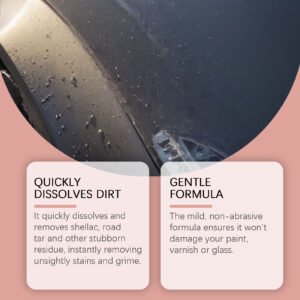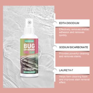 Our automobile bug remover cleaner contains disodium EDTA, sodium bicarbonate, and laureth-7. It can quickly dissolve and remove bug glue, asphalt, and other stubborn residues, instantly getting rid of unsightly stains and dirt. Its usage method is very simple: 1. Spray the cleaner on the surface to be treated. 2. Wait a few minutes to allow the bug glue to dissolve. 3. Wipe off the residues. The mild, non-abrasive formula ensures that it will not damage your paint, varnish, or glass.