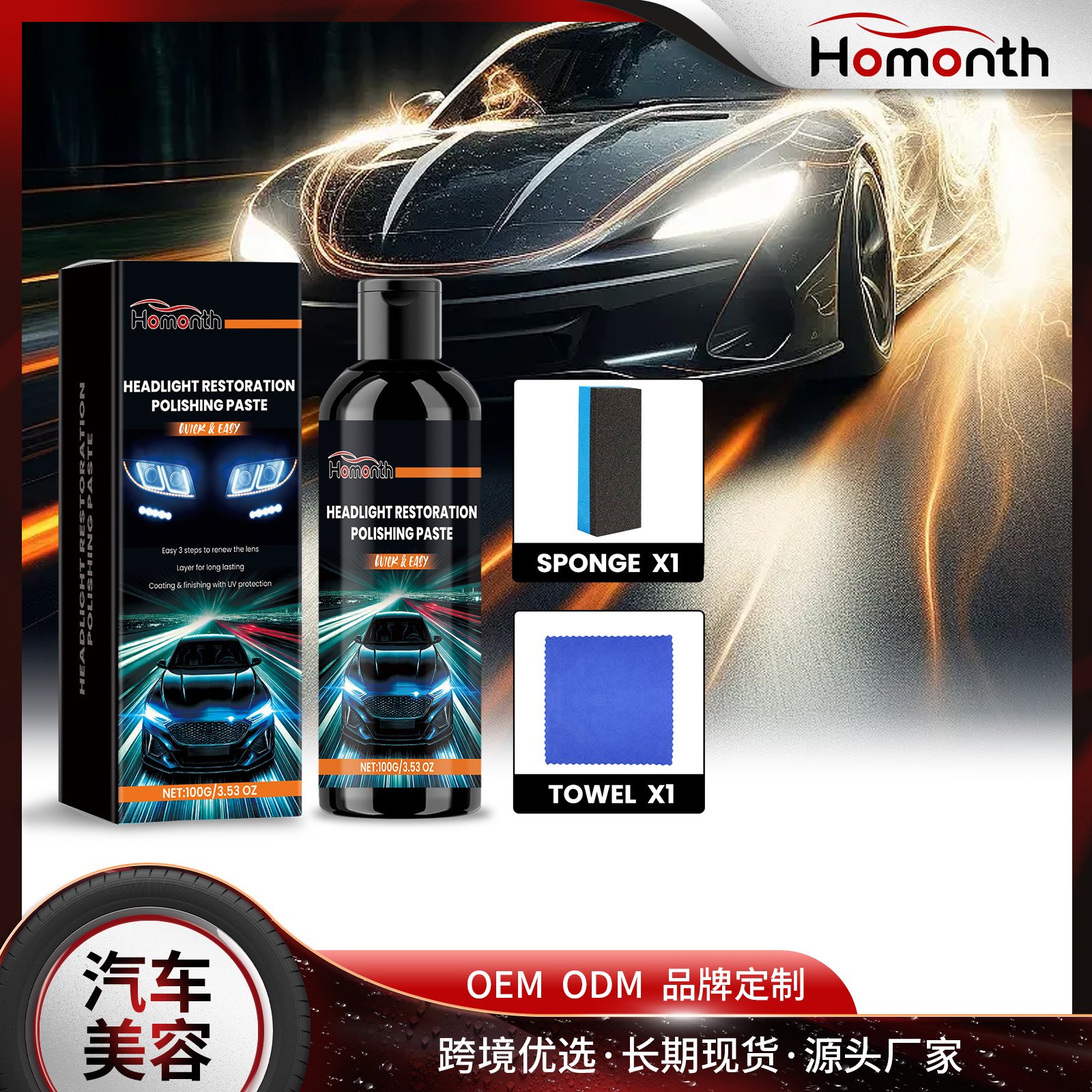 Our automotive headlight repair paste contains propylene glycol butyl ether and laureth-7. It can effectively repair scratches and oxidation on the headlight surface, restoring transparency. The usage method is simple: squeeze an appropriate amount of the product onto a clean sponge and wipe the headlight surface back and forth. After wiping, let it stand for 5 minutes, then wipe off the residue with a towel. It can effectively remove minor scratches and yellowing from the headlight surface, significantly improving the transparency and brightness of the headlights.
