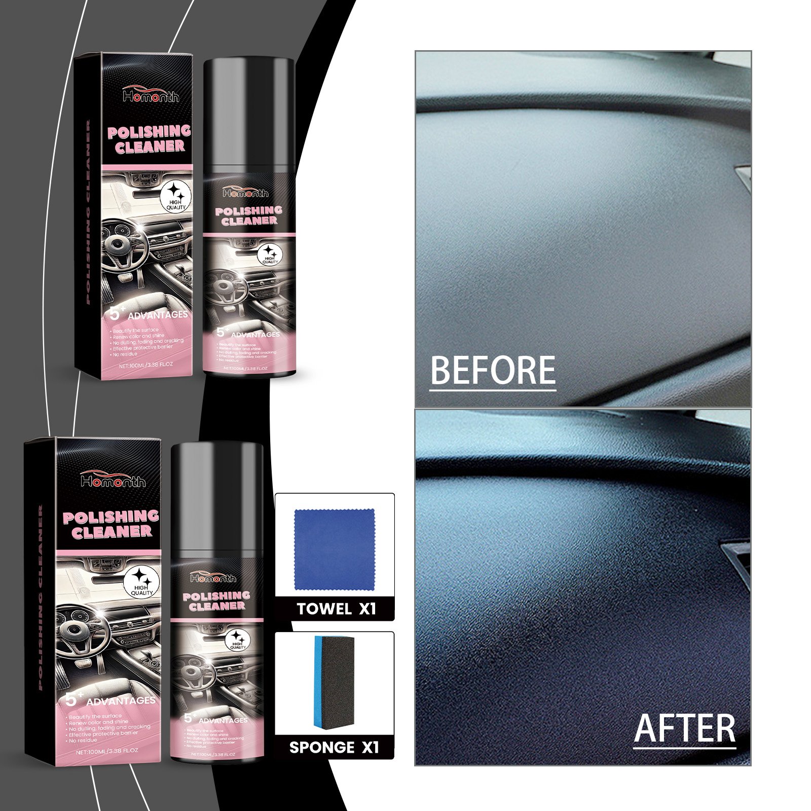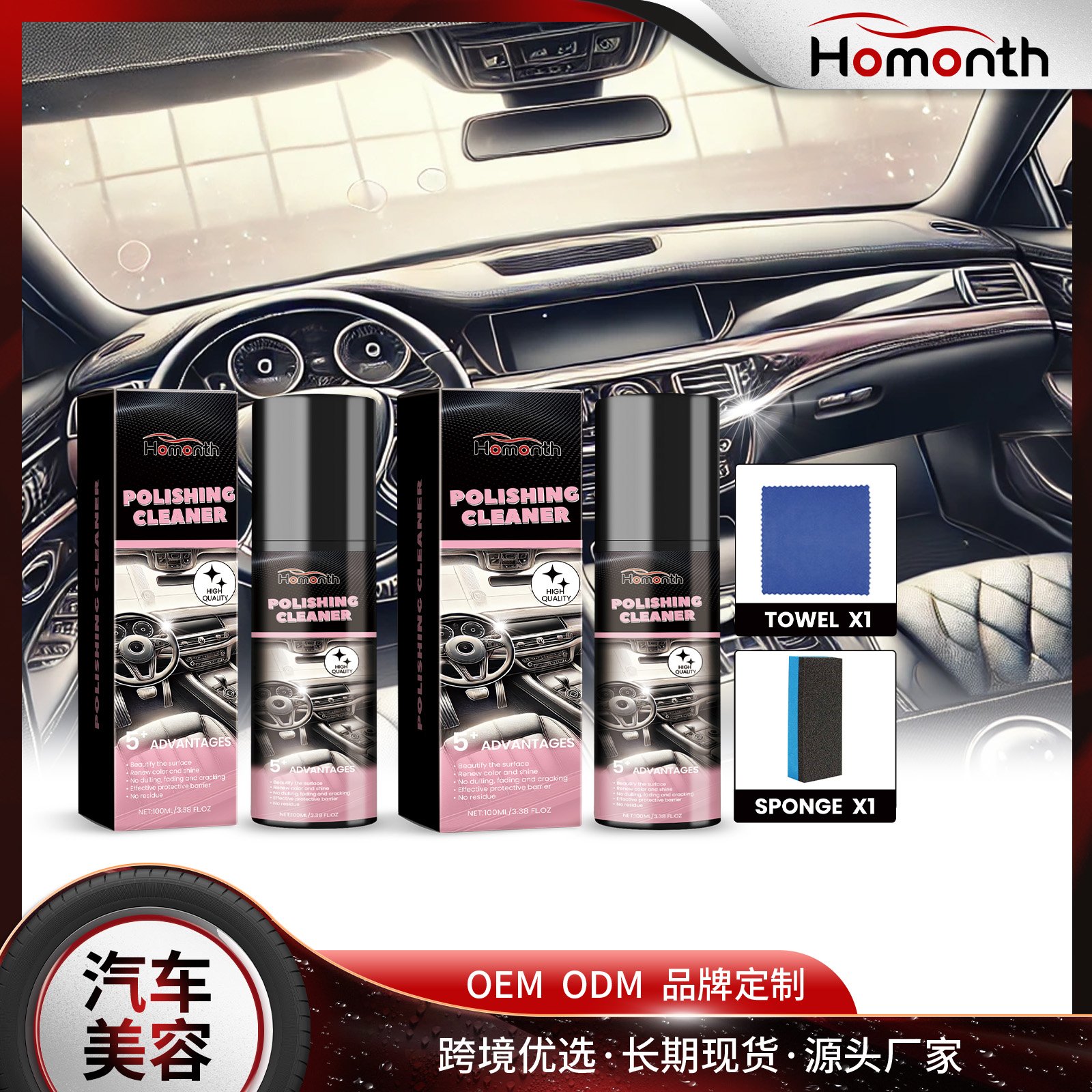 Our automotive interior polisher contains amino silicone oil and glacial acetic acid. It can deeply clean and effectively remove internal stains. The usage method is simple: evenly spray the product on the parts inside the car that need polishing, wait for 3-5 minutes, and then wipe the surface until polished. It can also mildly polish, restore the luster of the inner surface, and improve the texture.