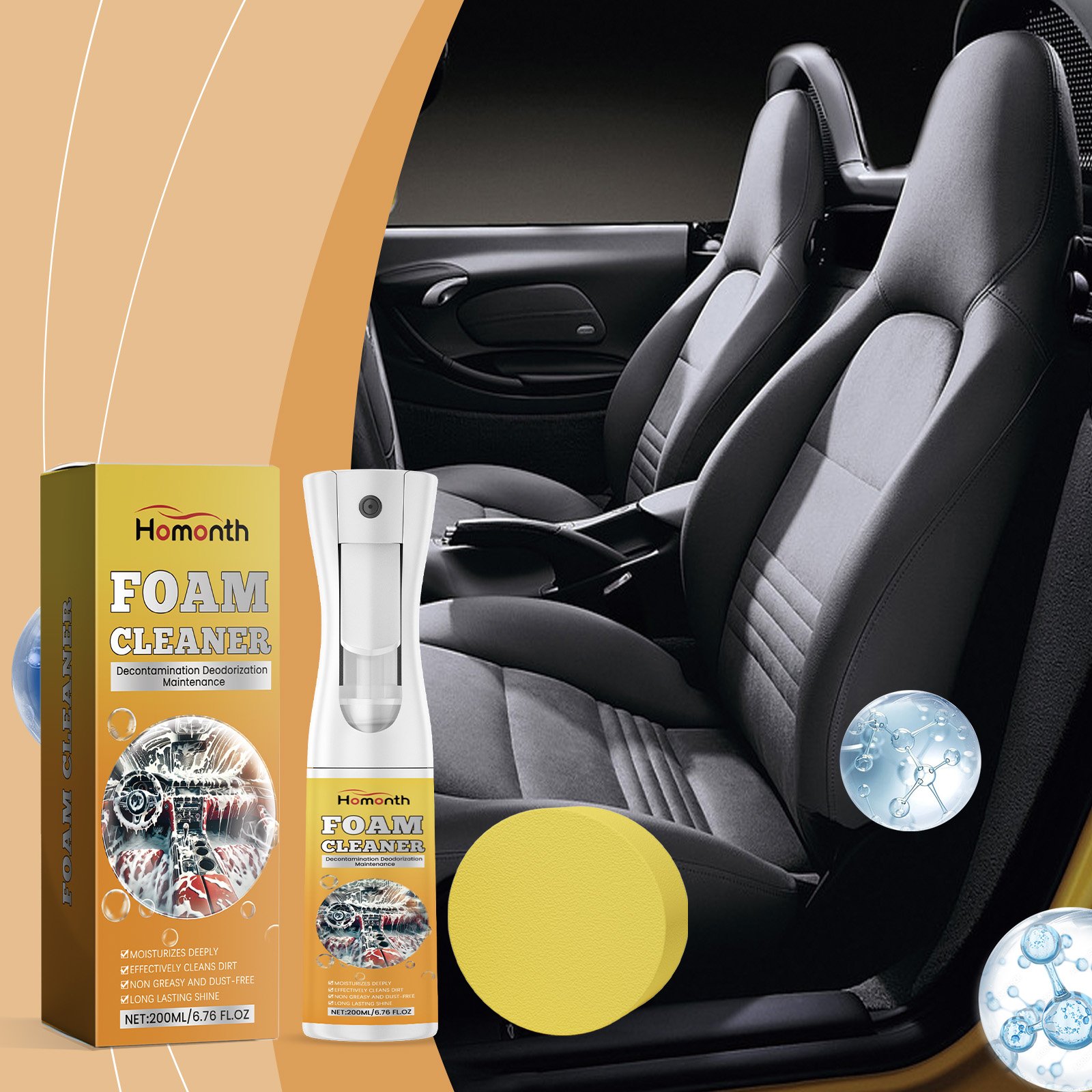 Our automotive multipurpose foam cleaner contains disodium EDTA, sodium bicarbonate, and laureth-7. It enables deep cleaning to effectively remove interior dirt, while gently polishing to restore the luster and improve the texture of interior surfaces. The usage is simple: 1. Shake the bottle well and evenly spray onto the surface to be cleaned. 2. Wipe in a circular motion with a sponge until foam appears, then rinse away the stains. It forms a protective layer on the surface, effectively waterproofing and resisting stains to keep the vehicle interior clean.