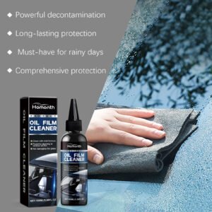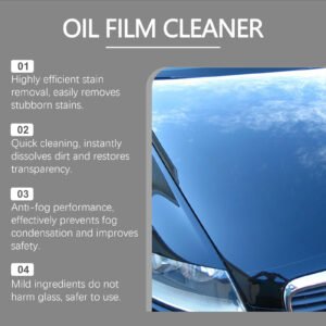 Our automotive oil film cleaner contains disodium EDTA, sodium bicarbonate, and laureth-7. It can remove stubborn oil films, form a waterproof membrane, ensure clear visibility, and improve driving safety. With long-lasting protection, once used, you can enjoy months of cleaning effects, reducing frequent maintenance and saving costs. The usage method is simple: rinse the car surface with water to remove sand and dust, apply the product to the glass, wipe evenly back and forth, and then rinse thoroughly with water. It can also eliminate fog, gently remove dust, insects, and other stains from the glass, restoring the cleanliness of the vehicle body.
