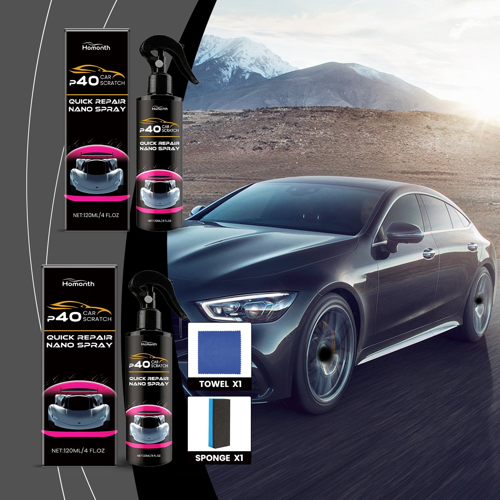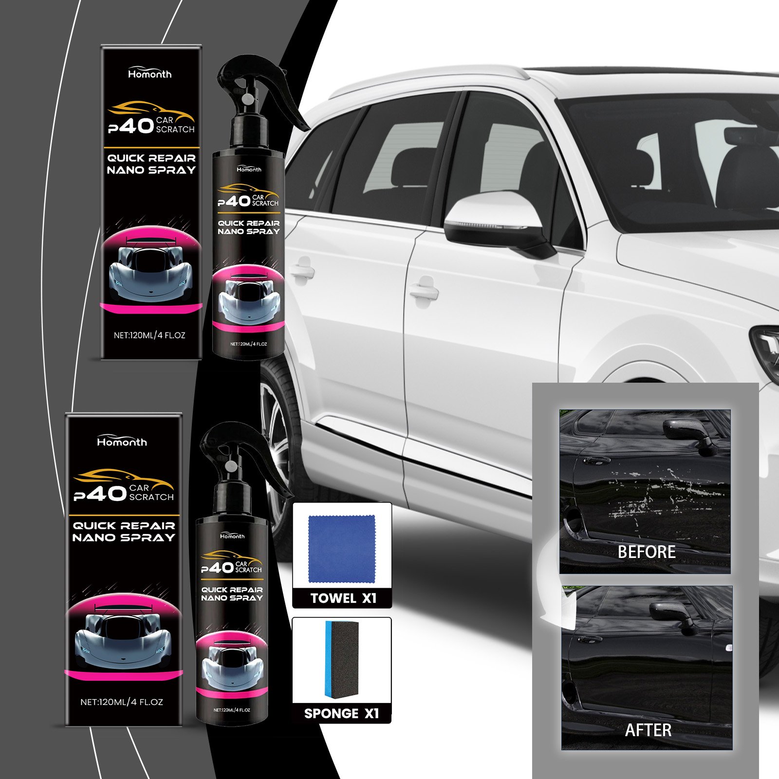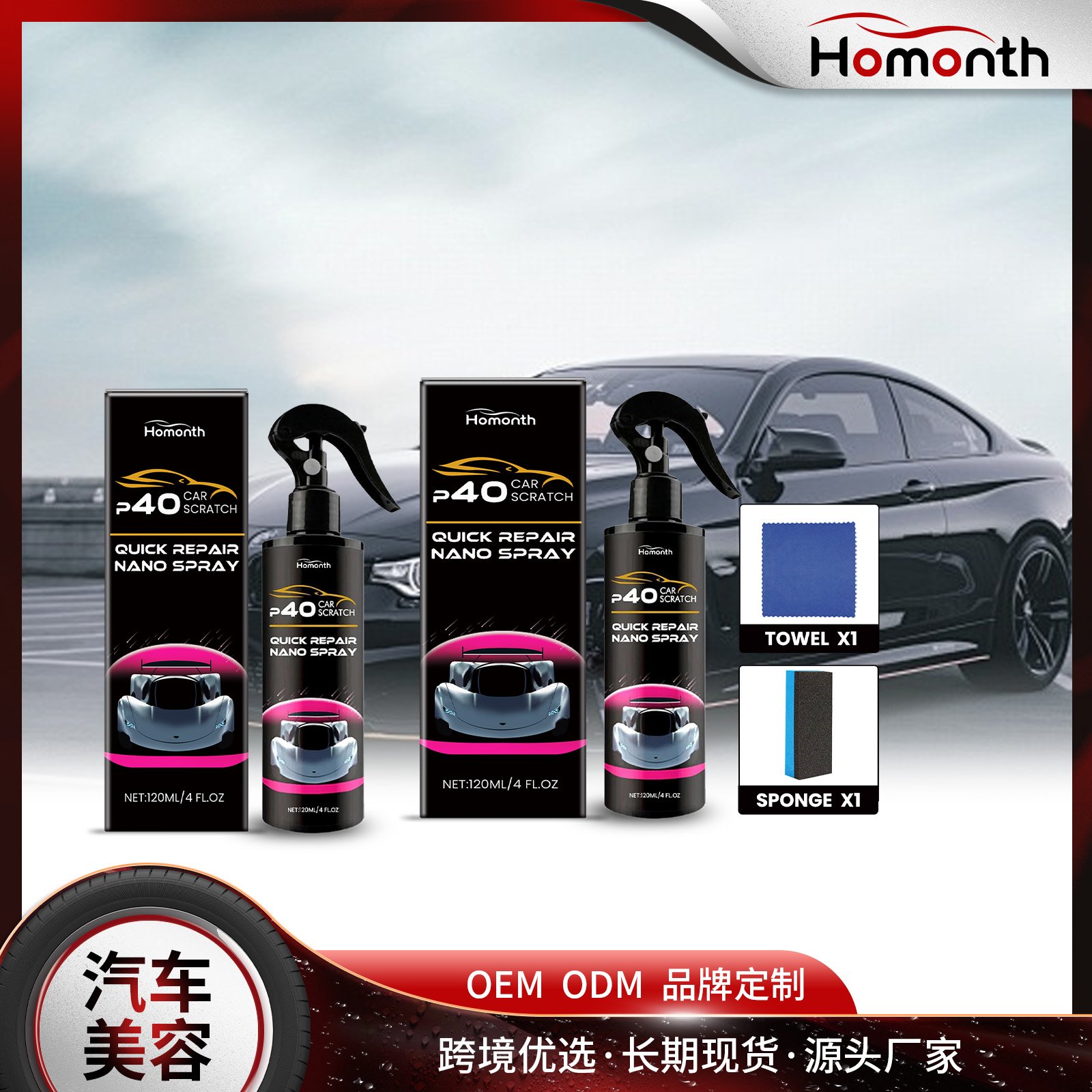 Our Homonth automotive scratch quick repair nano spray set contains propylene glycol methyl ether and sodium silicate. With its unique formula, it can quickly cover minor scratches and is suitable for various colors and types of automotive paints. The usage method is simple: first, clean the dust, dirt, or other impurities from the scratched area of the car body. Take an appropriate amount of the product and apply it evenly on the scratch surface. Gently wipe the scratched area until the scratches gradually disappear. Finally, use a towel to remove the surface residue. It can instantly remove car marks, including scratches and sunlines, restoring the body to a smooth and bright surface.