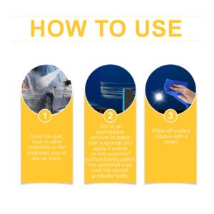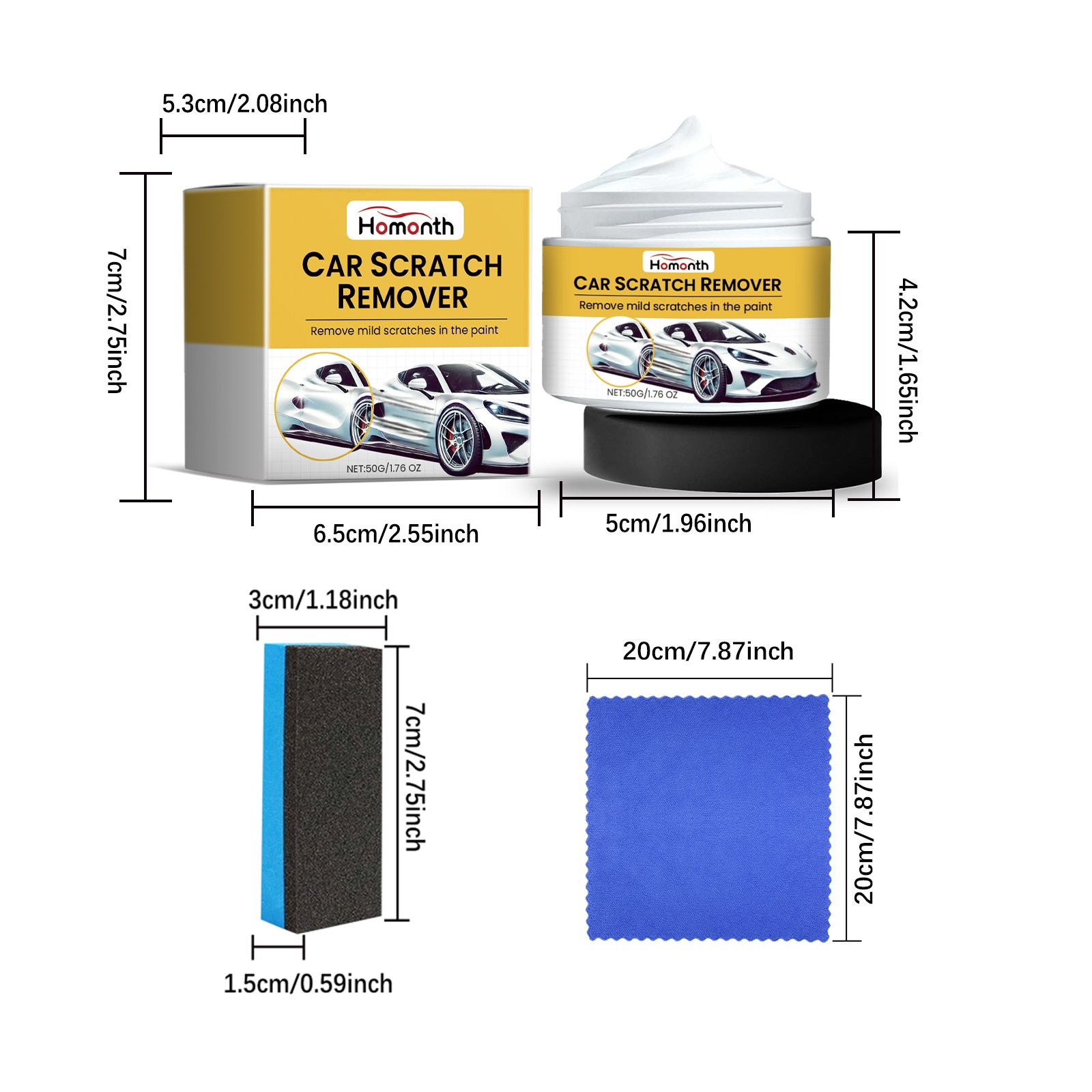 1. Dip a sponge into an appropriate amount of the paste and apply it evenly to the scratched surface. 2. Gently wipe the scratched area until the marks gradually disappear. 3. Use a cotton swab to remove surface residues. 4. Clean the dust, dirt, or other impurities from the scratched area on the vehicle body. It is suitable for various car paints to meet different needs. Specifically designed for automotive scratches, it quickly fills and repairs the paint surface.