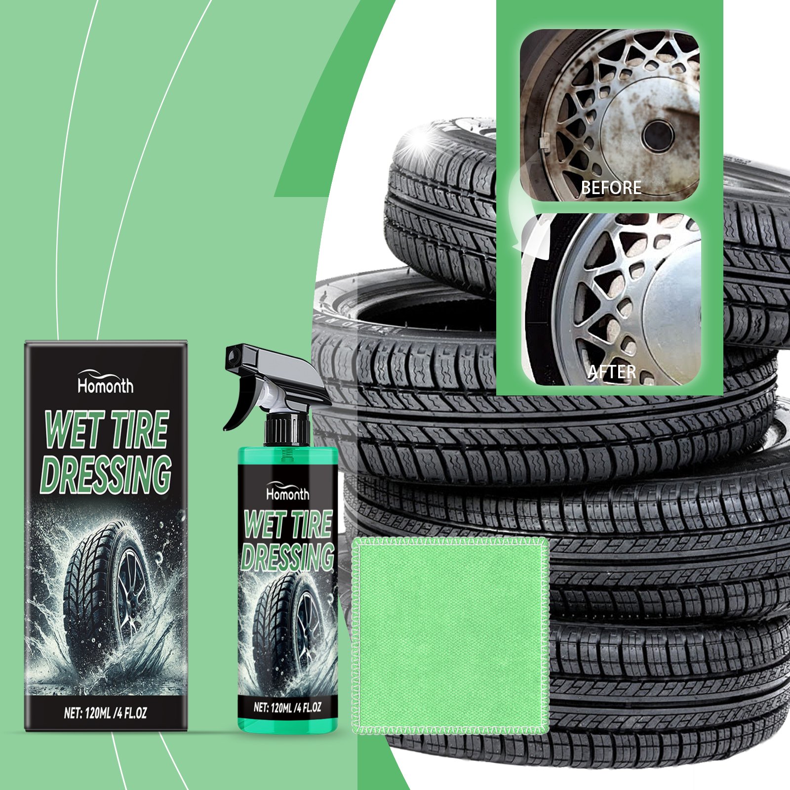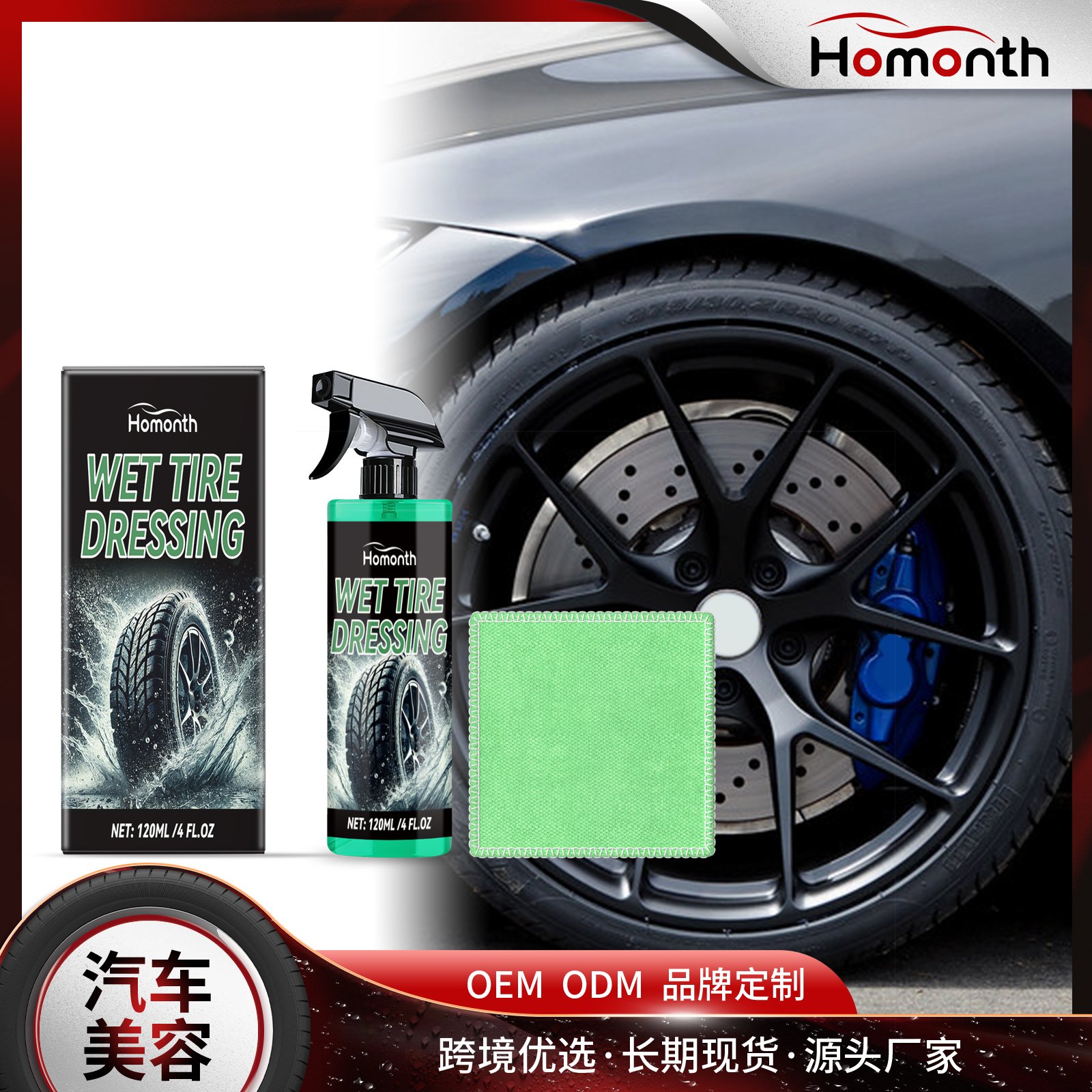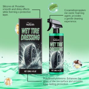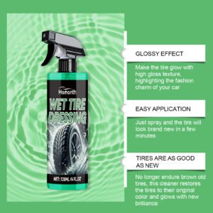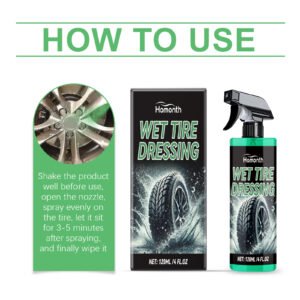 Our auto tire protectants include silicone oil, polydimethylsiloxane, cocamidopropyl betaine. Its refined nozzle design ensures uniform spraying without dead ends. Provides long-term protection and keeps the fire bright for a long time. Its use method is very simple: shake the product before use, open the nozzle, evenly spray on the tire, leave it for 3-5 minutes after spraying, and finally wipe. And it can easily remove the dust and dirt on the surface of the tire and restore the brightness of the tire. Can be used with polishing cloth to enhance the brightness effect.