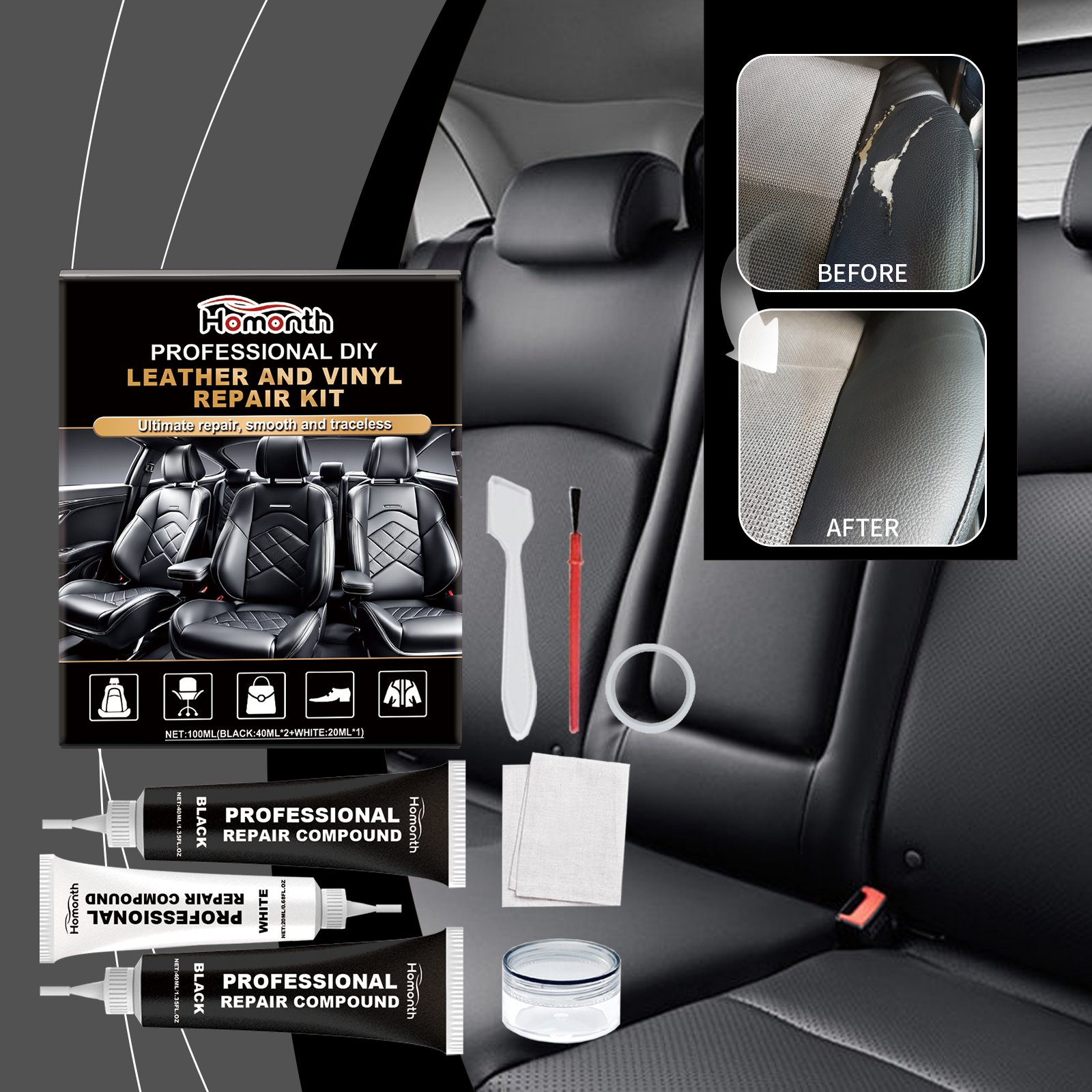 Homonth Car Leather Seat Repair Kit