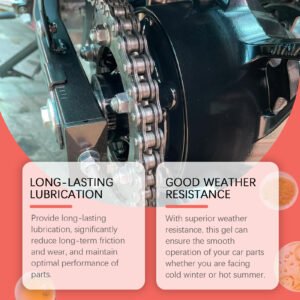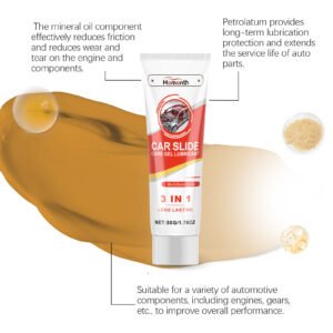 Our car lubricating gel contains mineral oil, petrolatum, and paraffin. It can provide long-lasting lubrication, significantly reduce long-term friction and wear, and maintain the optimal performance of parts. Its usage method is very simple: squeeze the car sliding care gel lubricant onto door hinges, seat armrests, sunroofs and other places that need to be applied, then gently brush it off with a brush. This gel has excellent weather resistance, ensuring that your car parts operate smoothly whether you are facing a cold winter or a hot summer.