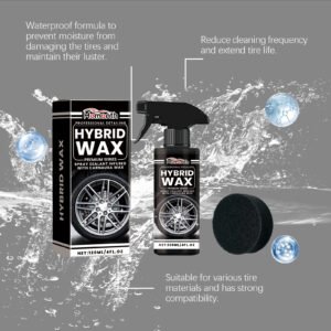 Our tire shine spray contains polysiloxane and carnauba wax. It can quickly restore the shine of tires, making the car look brand new. The usage method is simple: before use, clean the tire surface and shake the spray gently. Evenly spray the spray onto the tire surface. After the film is formed, wipe off the excess liquid with a sponge to form a protective layer. It can provide a wet shine for tires and rims, ensuring a long-lasting visual effect.
