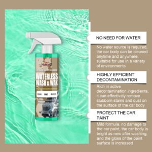 Our waterless car washing and coating agent contains Brazil palm wax, disodium EDTA, and sodium bicarbonate. After use, it makes the vehicle body smoother, effectively preventing water stain residue. It keeps the vehicle body clean for a long time and reduces the risk of oxidation and corrosion. The usage method is simple: evenly spray the solution onto the vehicle body, and directly wipe off the stains with a towel. It contains high-efficiency decontamination ingredients to deeply clean stains on the vehicle body surface. Suitable for various vehicle body colors, the vehicle body will shine like new after cleaning.