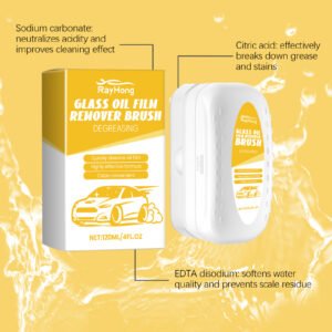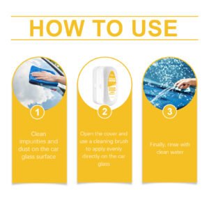 Our car glass cleaning brush contains disodium EDTA and isopropyl alcohol. It can fully protect the glass and prevent secondary pollution. Its usage is very simple: remove impurities and dust from the surface of the car glass, open the lid, apply it directly and evenly on the car glass with the cleaning brush, and finally rinse with clean water. Moreover, it doesn’t require washing; the glass will look brand new after wiping. The brush head is scientifically designed, so it won’t damage the glass and has a long service life.