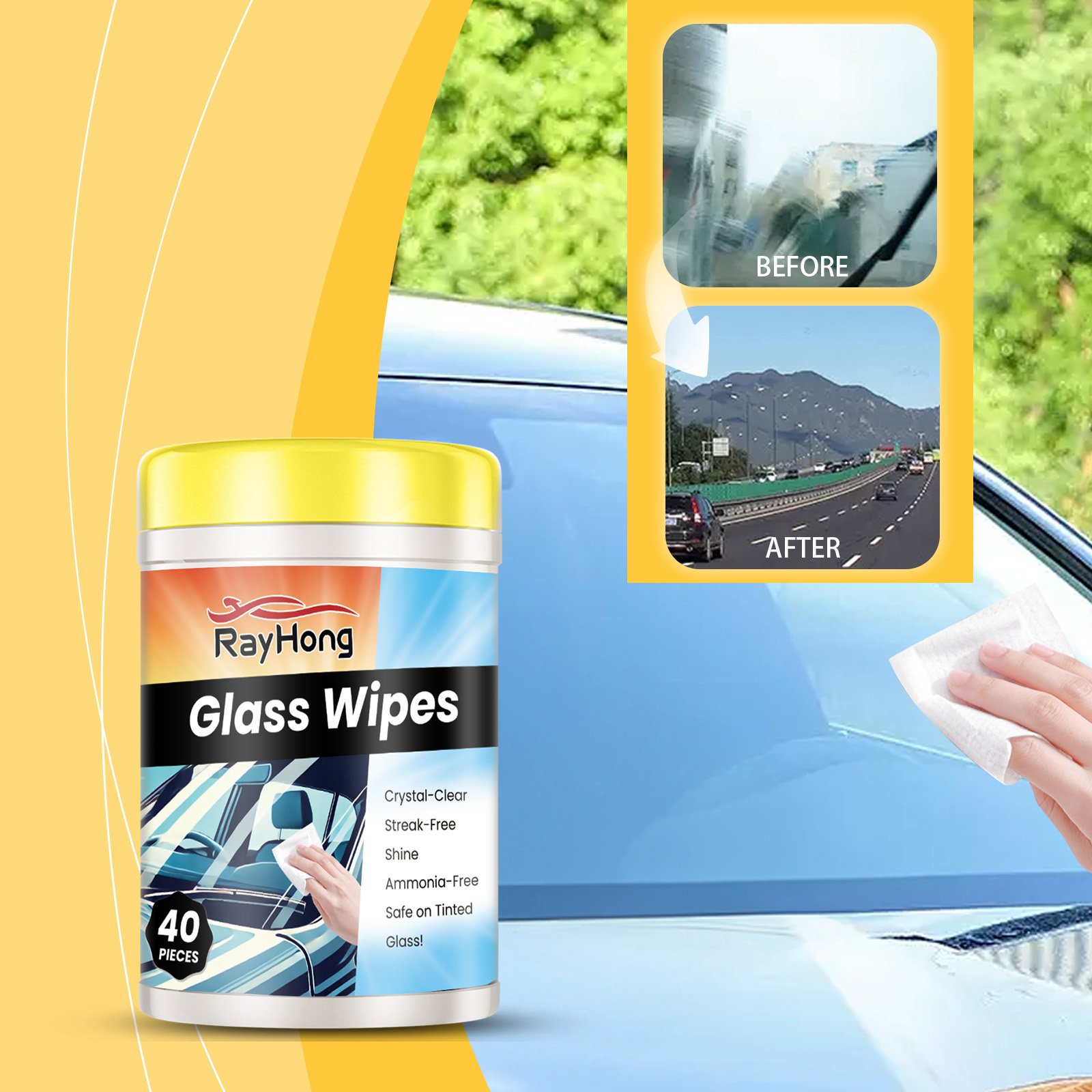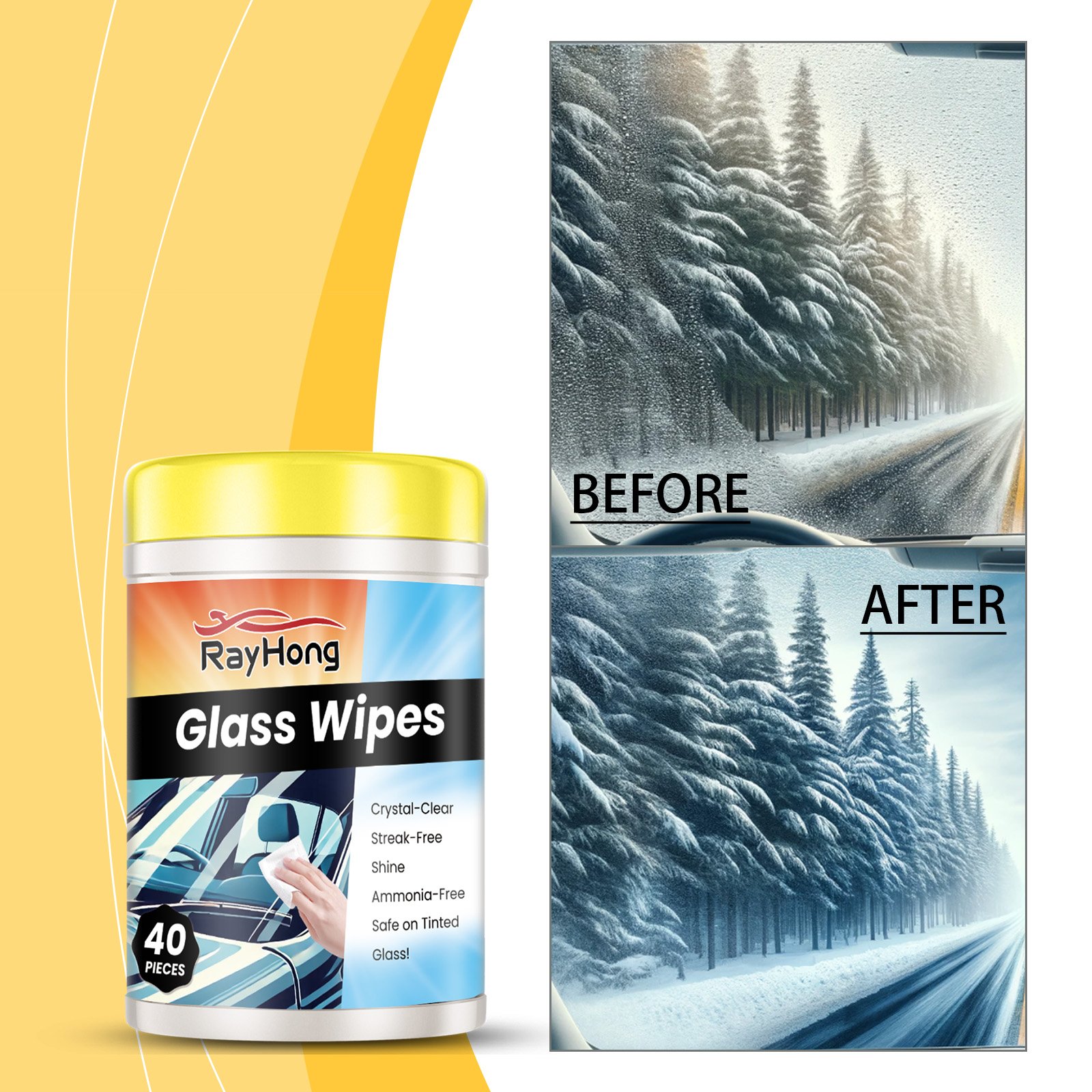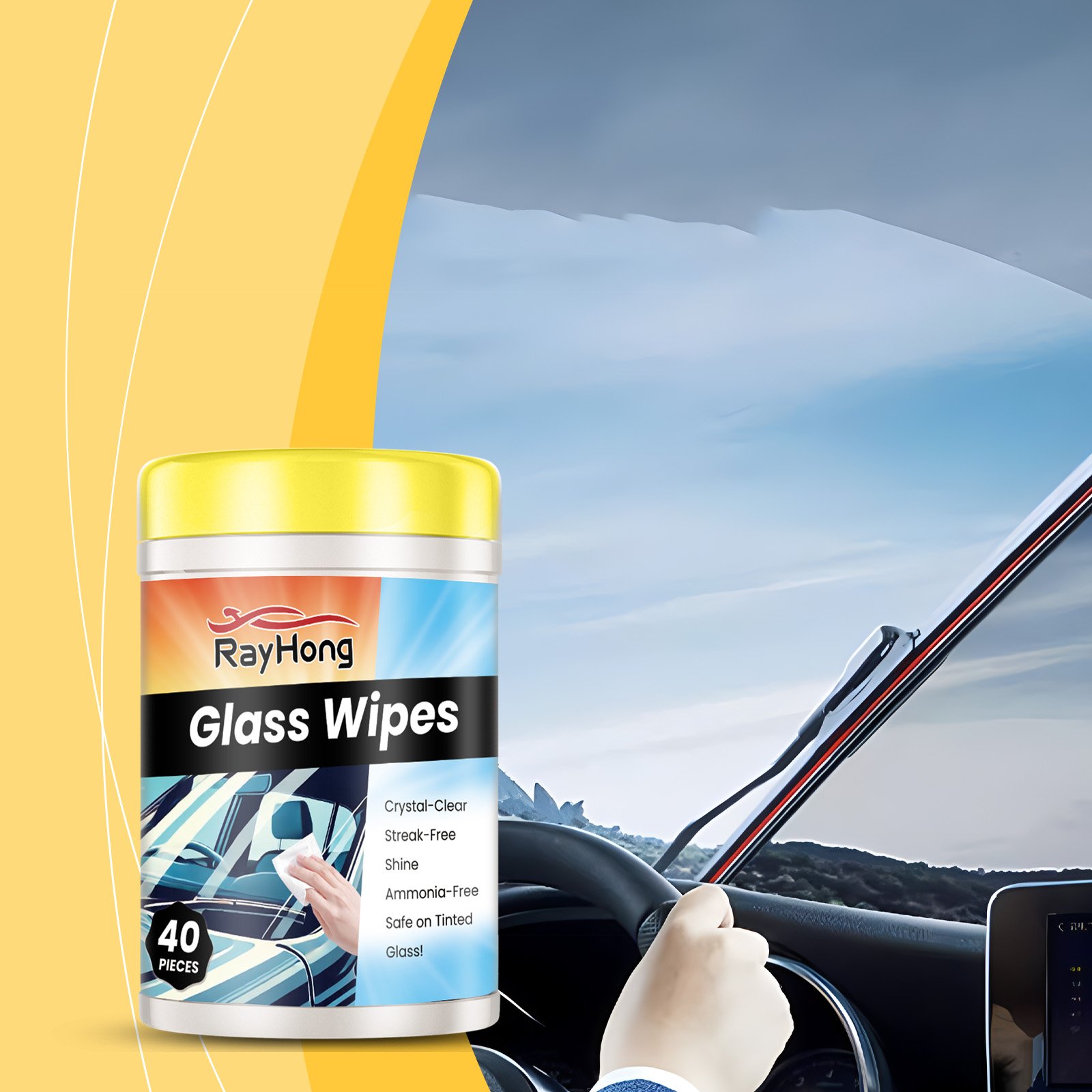 Our automotive glass cleaning wipes contain EDTA disodium, cocamidopropyl betaine, and palm kernel oil amide DEA. They can effectively remove oil stains and dirt, quickly restoring the transparency of the glass. The usage method is simple: when using for the first time, take a wipe from the edge of the central roller, pull it out gently, and tighten the lid. Then use the wipe to remove dirt from the glass surface. Additionally, they can easily erase road dirt and film residues, keeping the windows clean and tidy.