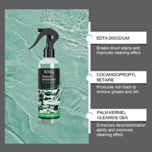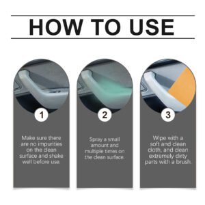Our automotive interior cleaner contains polytetrafluoroethylene (PTFE). It can quickly decompose stains and impurities to improve cleaning efficiency. The usage method is simple: ensure the surface to be cleaned is free of impurities and shake well before use. Spray a small amount multiple times onto the surface, then wipe with a soft and clean cloth. For extremely dirty areas, use a brush for cleaning. It can also quickly remove light dust, fingerprints, and surface stains inside the vehicle, making the car look as good as new.