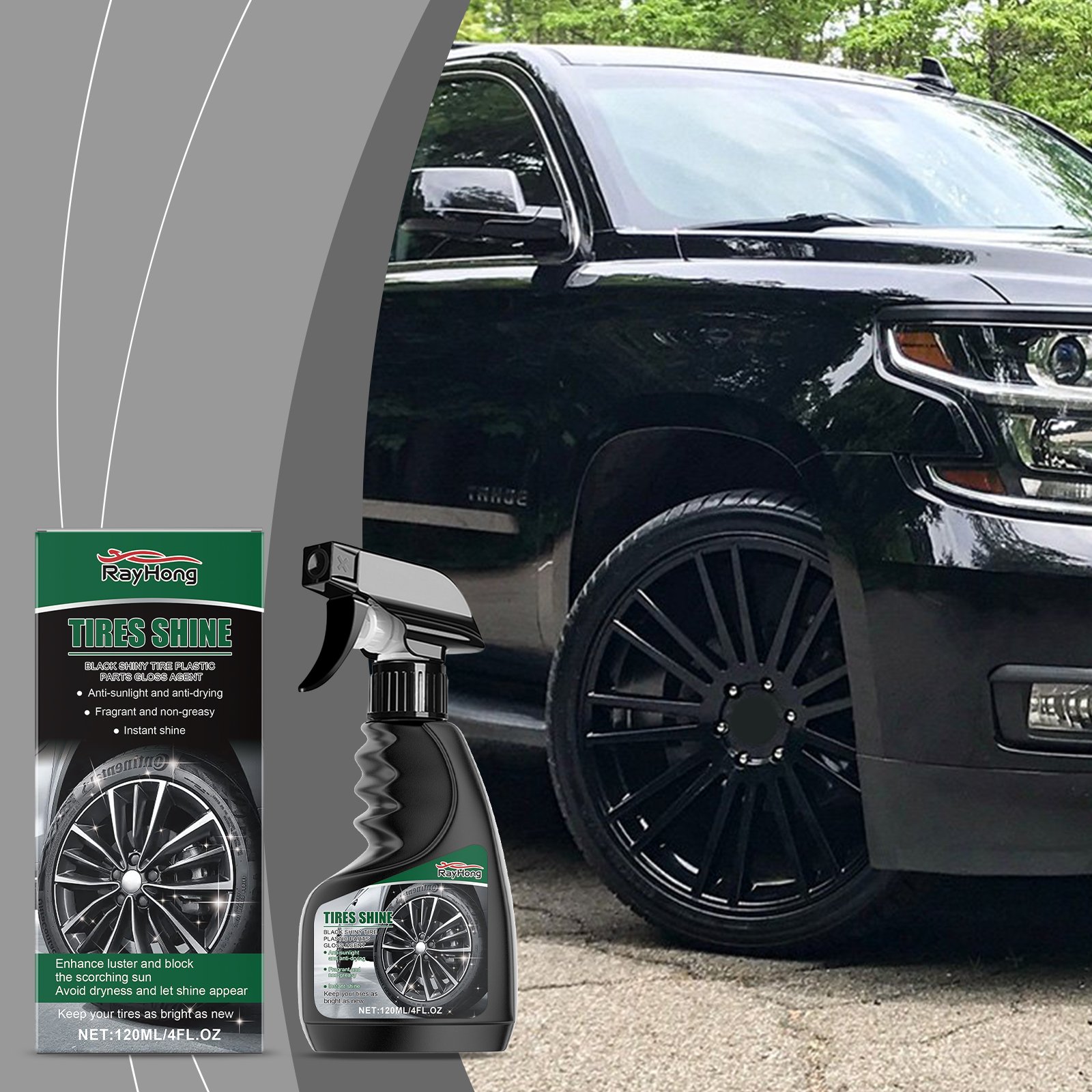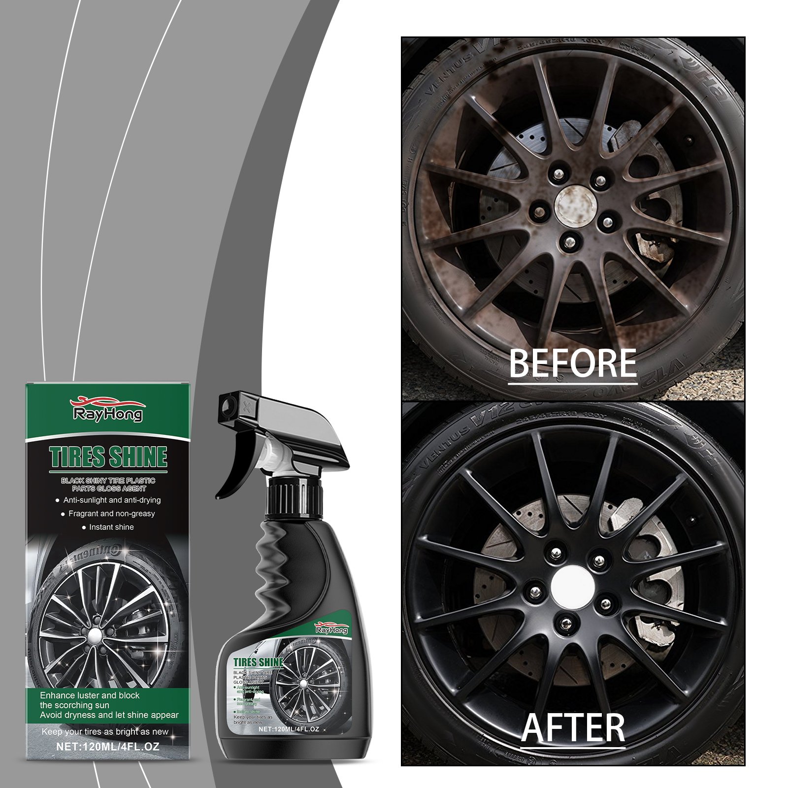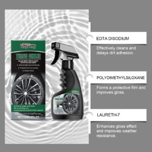 Our automobile tire gloss agent contains silicone oil, disodium EDTA, polydimethylsiloxane. It has an excellent gloss, is simple to use, easy to maintain, durable, can maintain the interior of the car for a long time, protect the tires and plastic and tire parts. Its use is simple: spray the product evenly on the surface of a tire or plastic part until the surface is shiny. And can be efficiently formulated, easy to restore tire luster.