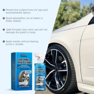 Our car wheel protectants contain isopropyl alcohol, propylene glycol butyl ether, lauryl glycol polyether-7. It can provide an effective cleaning effect and keep the surface dry. Remove stubborn stains and keep surfaces clean. Its use method is very simple: shake the product before use, turn on the nozzle, spray evenly on the tire, and leave it for 3-5 minutes after spraying. Provides a long-lasting gloss effect on surfaces such as tires and plastics, and is not easy to fade. It is suitable for tires, decorations and plastic surfaces of cars, trucks and other vehicles. Motorcycles, motorhomes, etc.