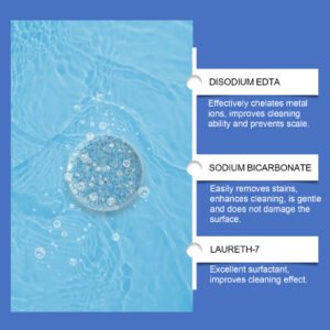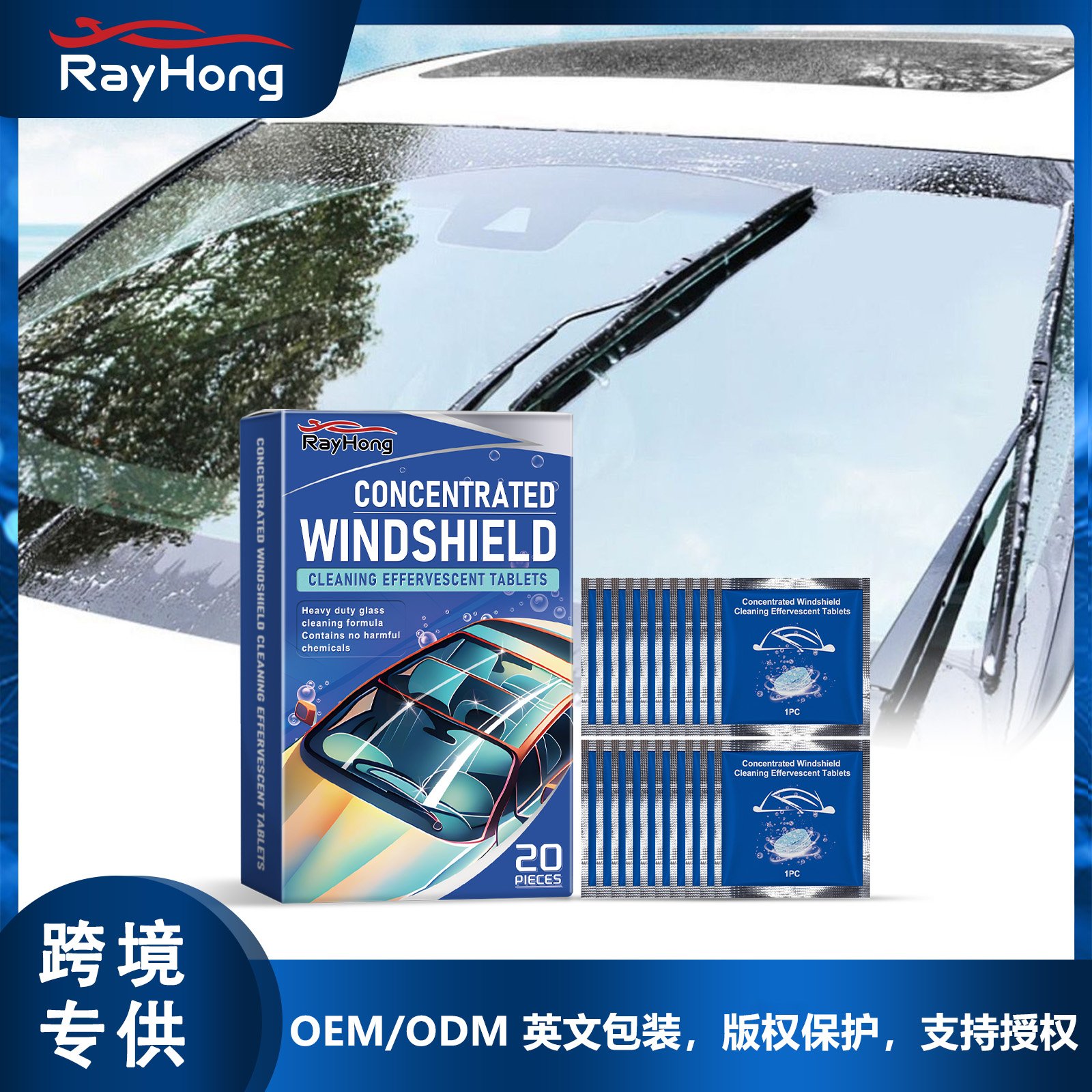 Our car windshield cleaning tablets contain disodium EDTA, sodium bicarbonate, lauryl ether 7. It can effectively clean the glass surface of the vehicle, so that your favorite car can keep clean and bright for a long time. Its use is simple: dissolve the cleaning sheet in 4 liters of water, pour it into the car tank, and start the windshield wiper to clean the windshield. Efficient hydrophobic removal of stubborn oil film, forming a waterproof film, ensure clear vision, improve driving safety.