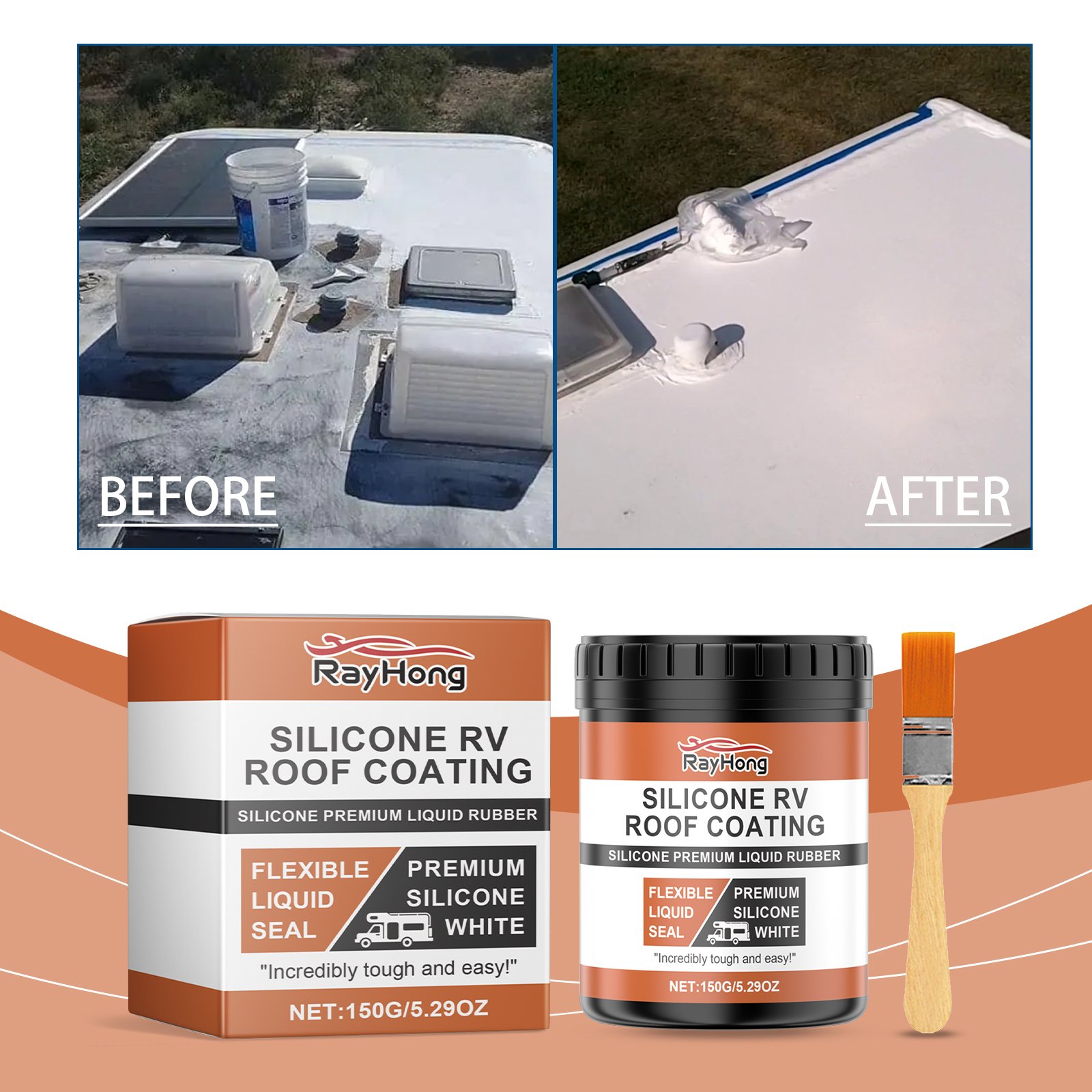 Our silicone RV roof coating contains silicon dioxide and plasticizer. It can ensure long-term use without degradation or fading under various climatic conditions. Its application method is very simple: clean the roof to ensure the surface of the RV roof is clean, check if there is any damage on the roof, repair those areas to ensure the surface is smooth, and thoroughly stir the silicone coating before use to ensure the ingredients are evenly mixed. Use a brush to apply a layer of silicone coating evenly on the RV roof, making sure to cover all areas, especially the seams and edges, and let the coating dry and cure, which usually takes 24-48 hours. Moreover, the application method is simple and user-friendly, suitable for DIY use, and can be completed without professional skills.